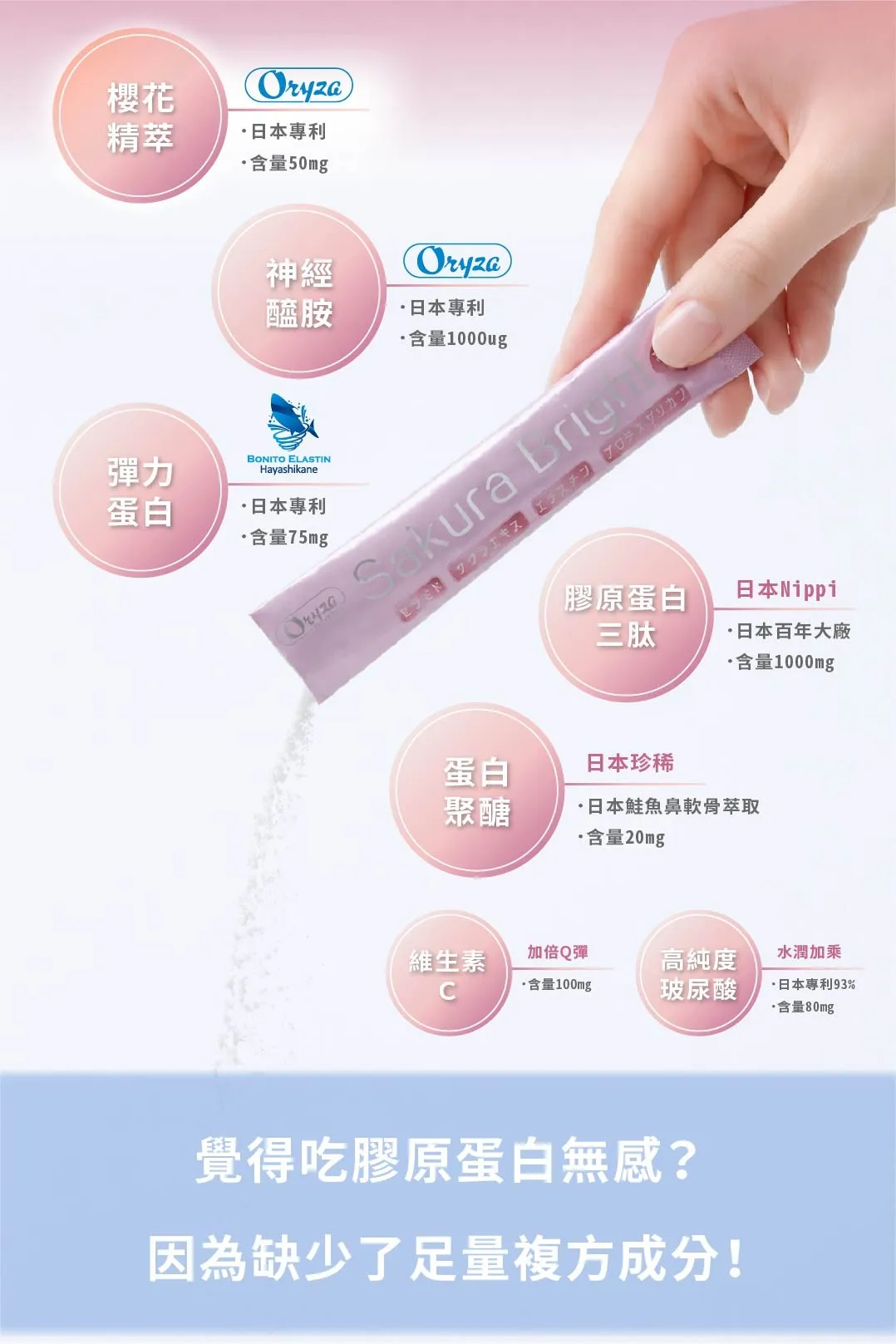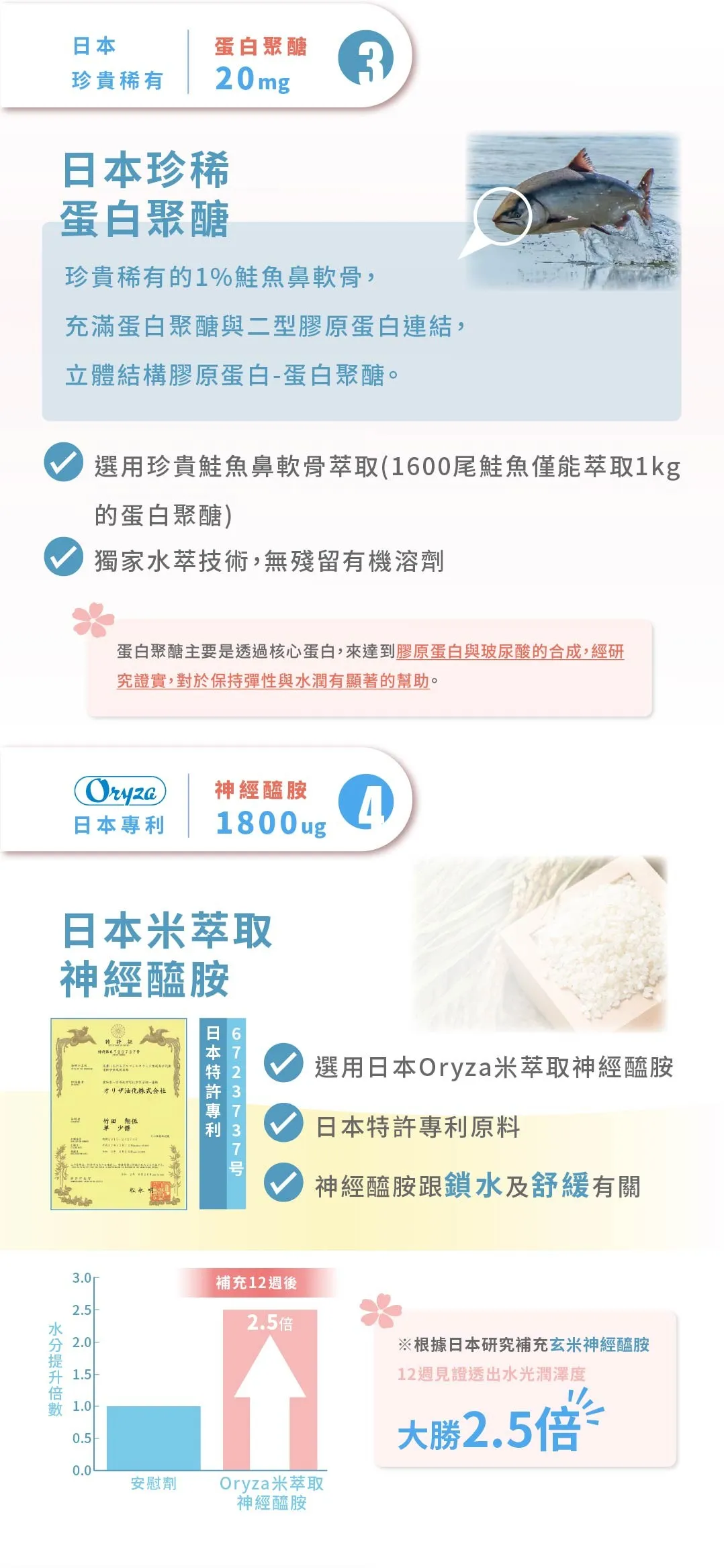 2. 專利成份且足量添加