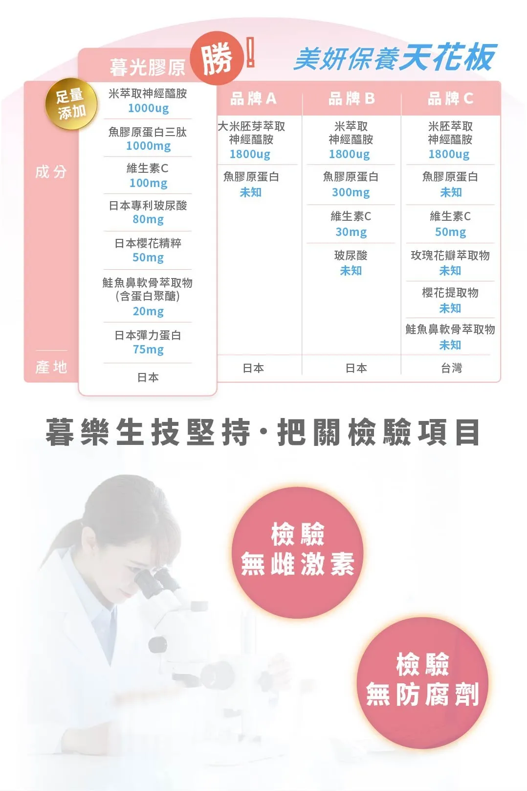 檢驗無雌激素、無防腐劑